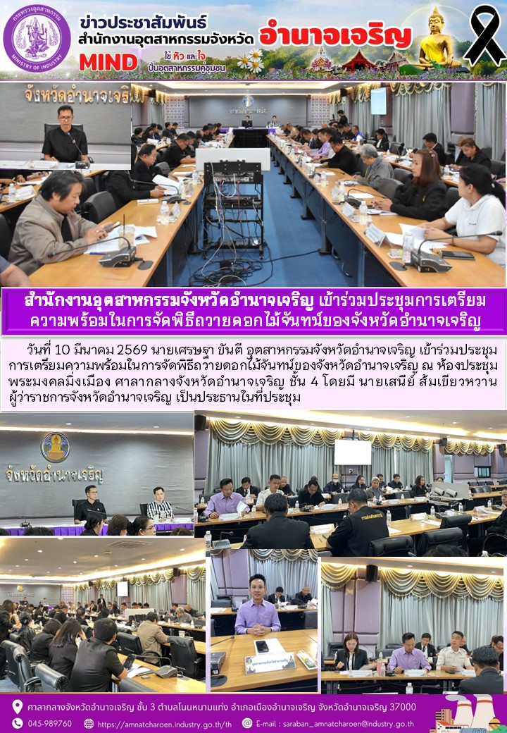 สำนักงานอุตสาหกรรมจังหวัดอำนาจเจริญ เข้าร่วมประชุมการเตรียม ความพร้อมในการจัดพิธีถวายดอกไม้จันทน์ของจังหวัดอำนาจเจริญ