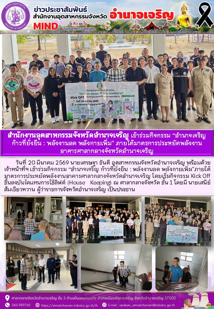 วันที่ 20 มีนาคม 2569 นายเศรษฐา ขันตี อุตสาหกรรมจังหวัดอำนาจเจริญ พร้อมด้วย