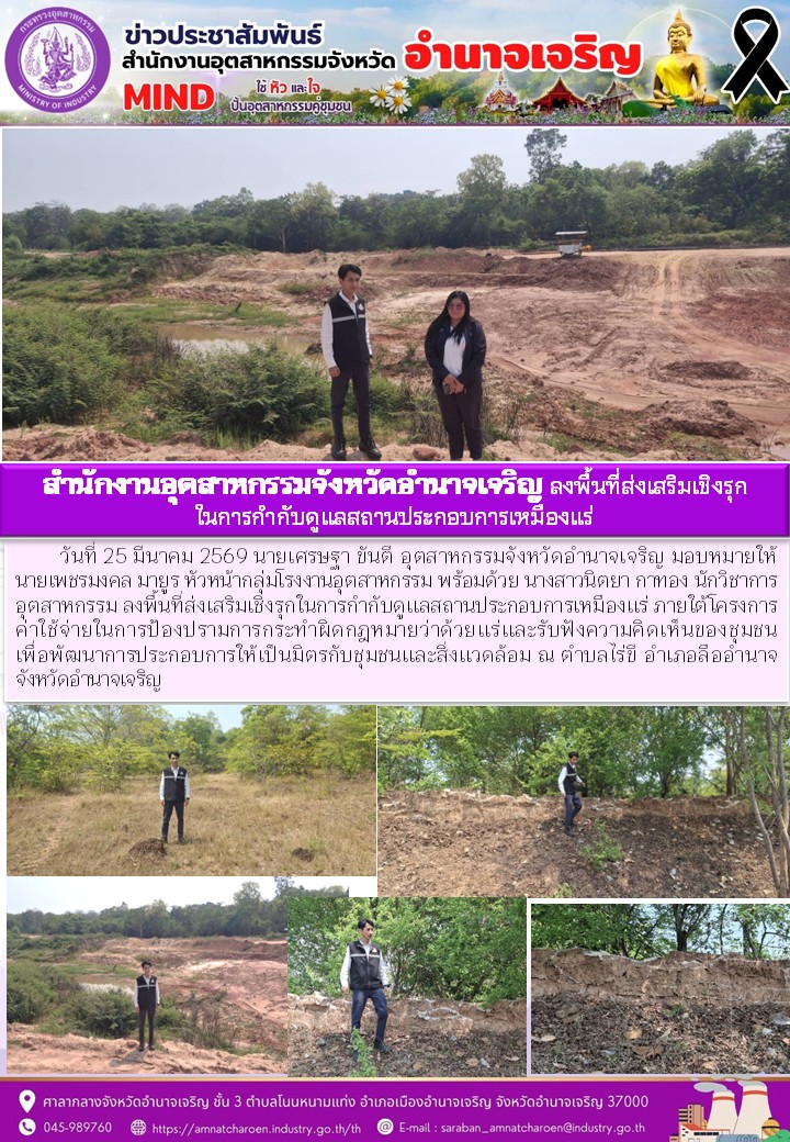 สำนักงานอุตสาหกรรมจังหวัดอำนาจเจริญ ลงพื้นที่ส่งเสริมเชิงรุก ในการกำกับดูแลสถานประกอบการเหมืองแร่