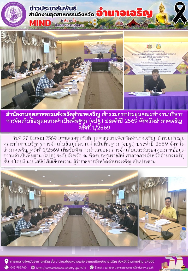 สำนักงานอุตสาหกรรมจังหวัดอำนาจเจริญ เข้าร่วมการประชุมคณะทำงานบริหาร การ จัด เก็บ ข้อมูล ความ จำเป็น พื้น ฐาน ( จปฐ .) ประจำ ครั้งที่ 1/2569