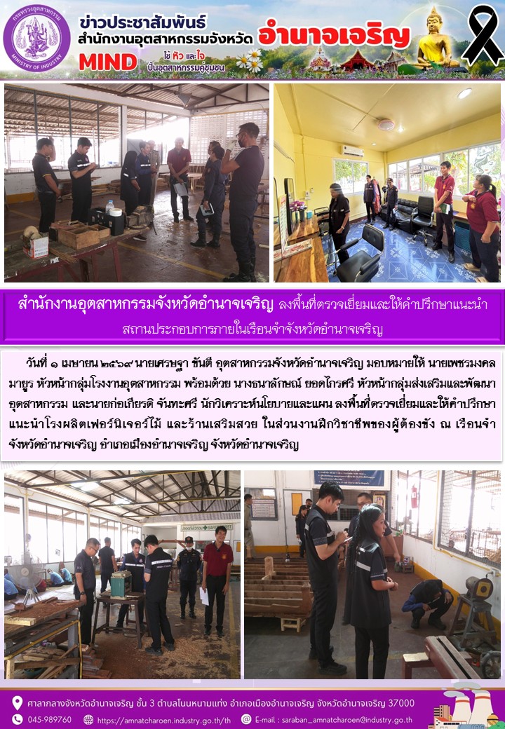 สำนักงานอุตสาหกรรมจังหวัดอำนาจเจริญ ลงพื้นที่ตรวจเยี่ยมและให้คำปรึกษาแนะนำสถานประกอบการภายในเรือนจำจังหวัดอำนาจเจริญ