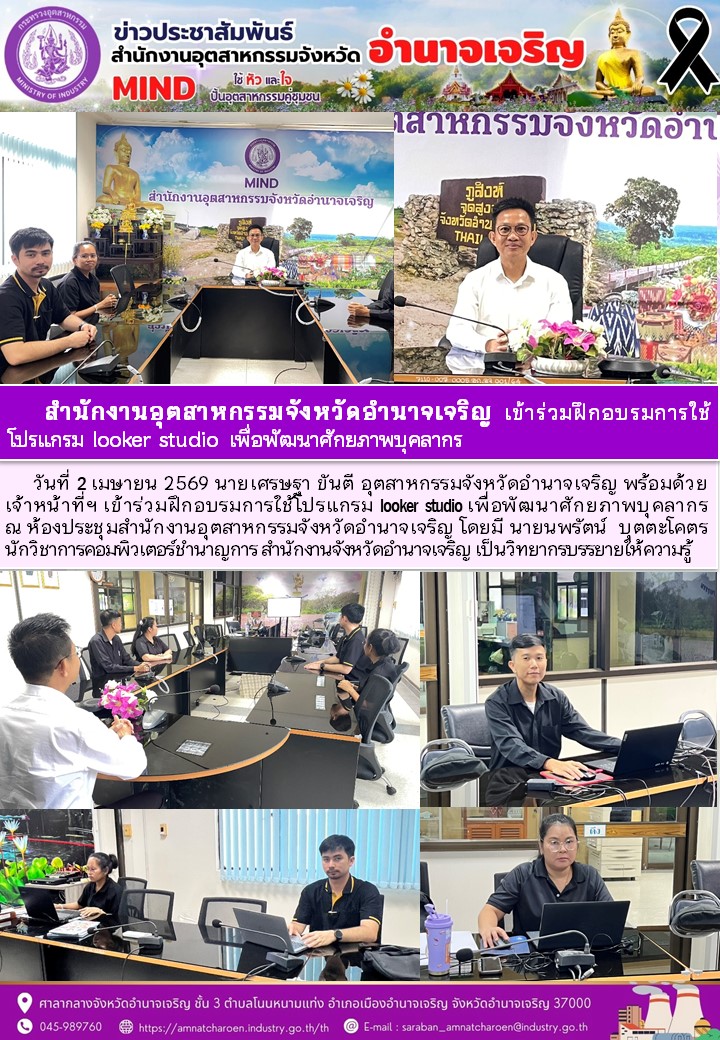 สำนักงานอุตสาหกรรมจังหวัดอำนาจเจริญ เข้าร่วมฝึกอบรมการใช้ โปรแกรม looker studio เพื่อพัฒนาศักยภาพบุคลากร
