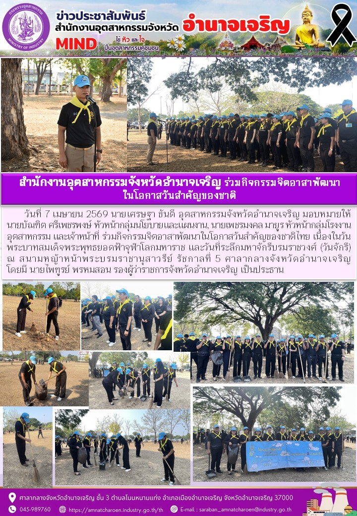สำนักงานอุตสาหกรรมจังหวัดอำนาจเจริญ ร่วมกิจกรรมจิตอาสาพัฒนา ในโอกาสวันสำคัญของชาติ