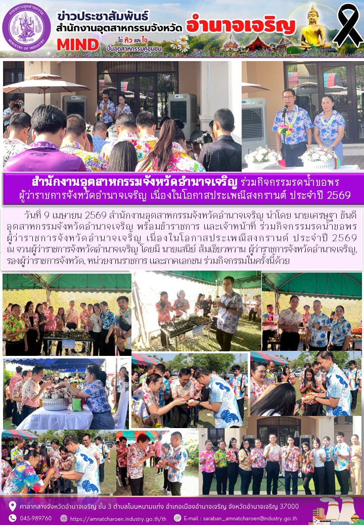 สำนักงานอุตสาหกรรมจังหวัดอำนาจเจริญ ร่วมกิจกรรมรดน้ำขอพรผู้ว่าราชการจังหวัดอำนาจเจริญ เนื่องในโอกาสประเพณีสงกรานต์ ประจำปี 2569