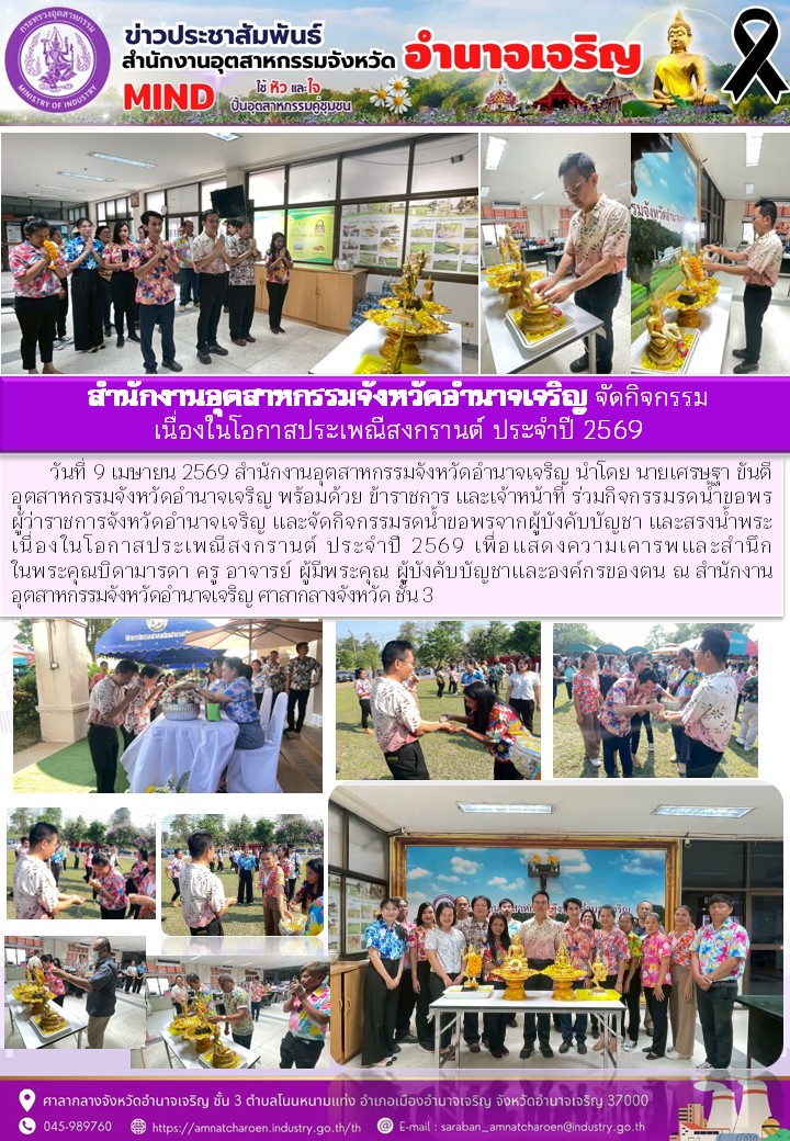 สำนักงานอุตสาหกรรมจังหวัดอำนาจเจริญ จัดกิจกรรม เนื่องในโอกาสประเพณีสงกรานต์ ประจำปี 2569