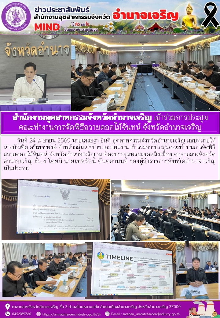 สำนักงานอุตสาหกรรมจังหวัดอำนาจเจริญ เข้าร่วมการประชุม คณะทำงานการจัดพิธีถวายดอกไม้จันทน์ จังหวัดอำนาจเจริญ