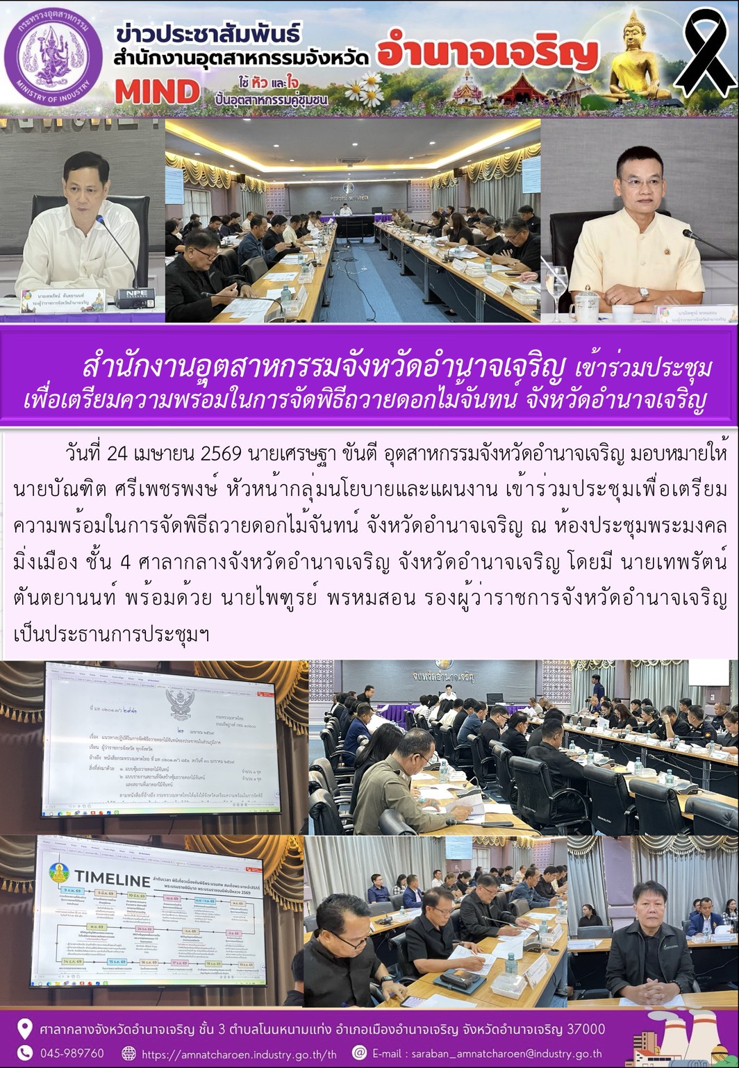 สำนักงานอุตสาหกรรมจังหวัดอำนาจเจริญ เข้าร่วมประชุม เพื่อเตรียมความพรอมในการจัดพิธีถวายดอกไม่จันทน จังหวัดอำนาจเจริญ